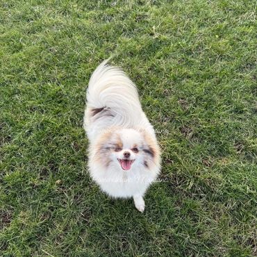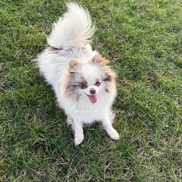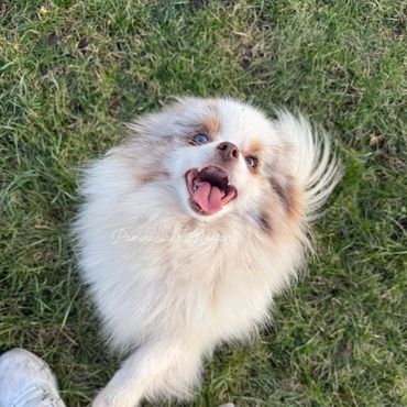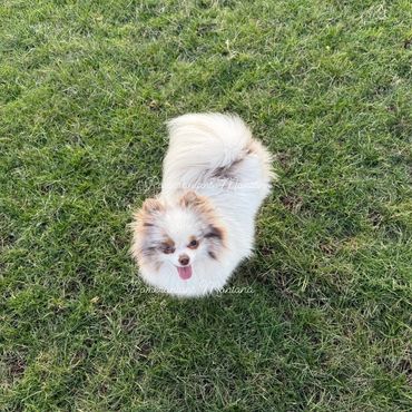 Meeka is a nee girl here larger size throwback style Pomeranian weighing around 9lbs very very sweet. she’s a stunning lavender Merle and is AKC.