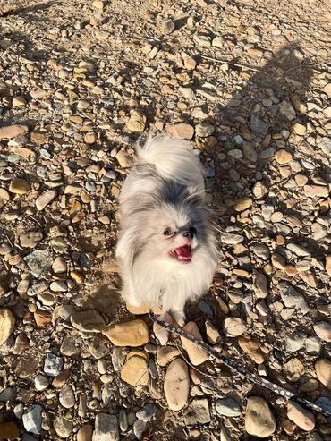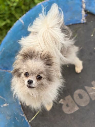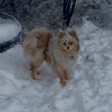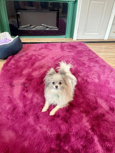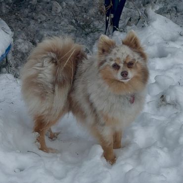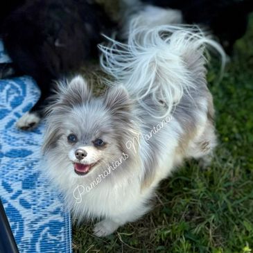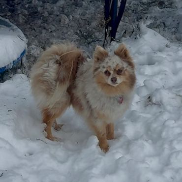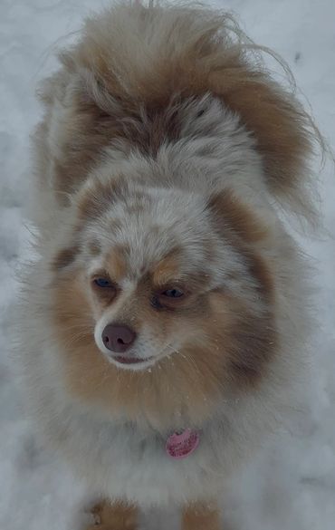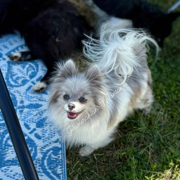 This girl is a gorgeous 5lbs blue merle parti is the biggest sweetheart ever! Always with me or in my lap giving kisses.
