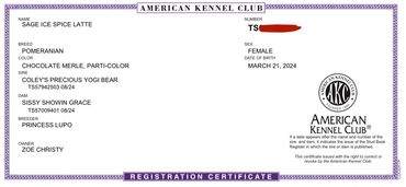 Stunning chocolate Merle parti girl weighing 5lbs and AKC regist